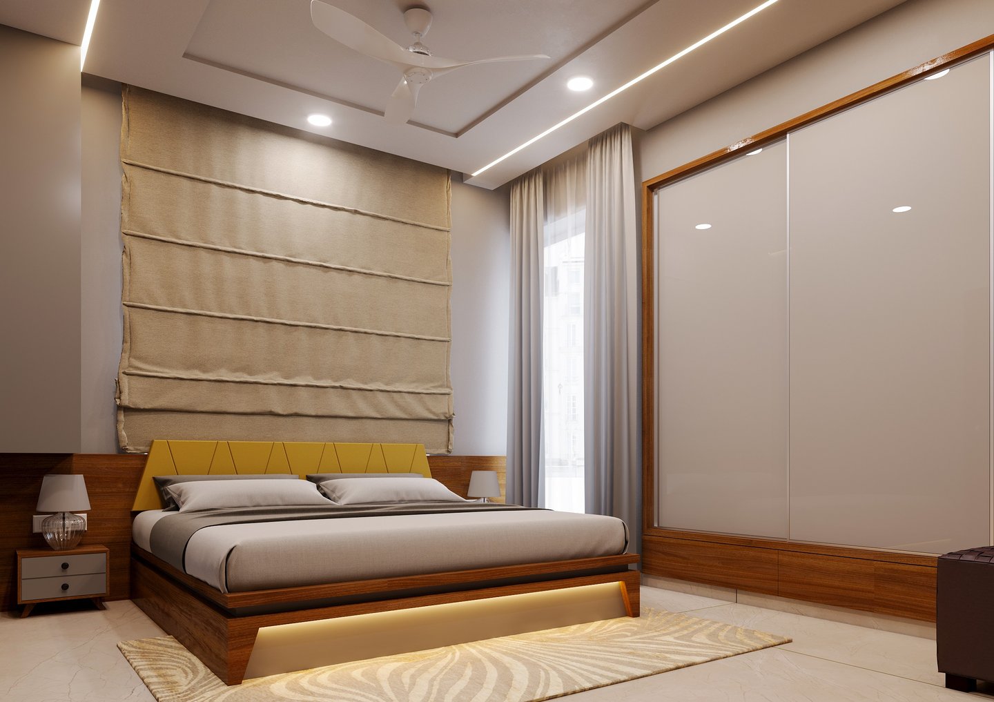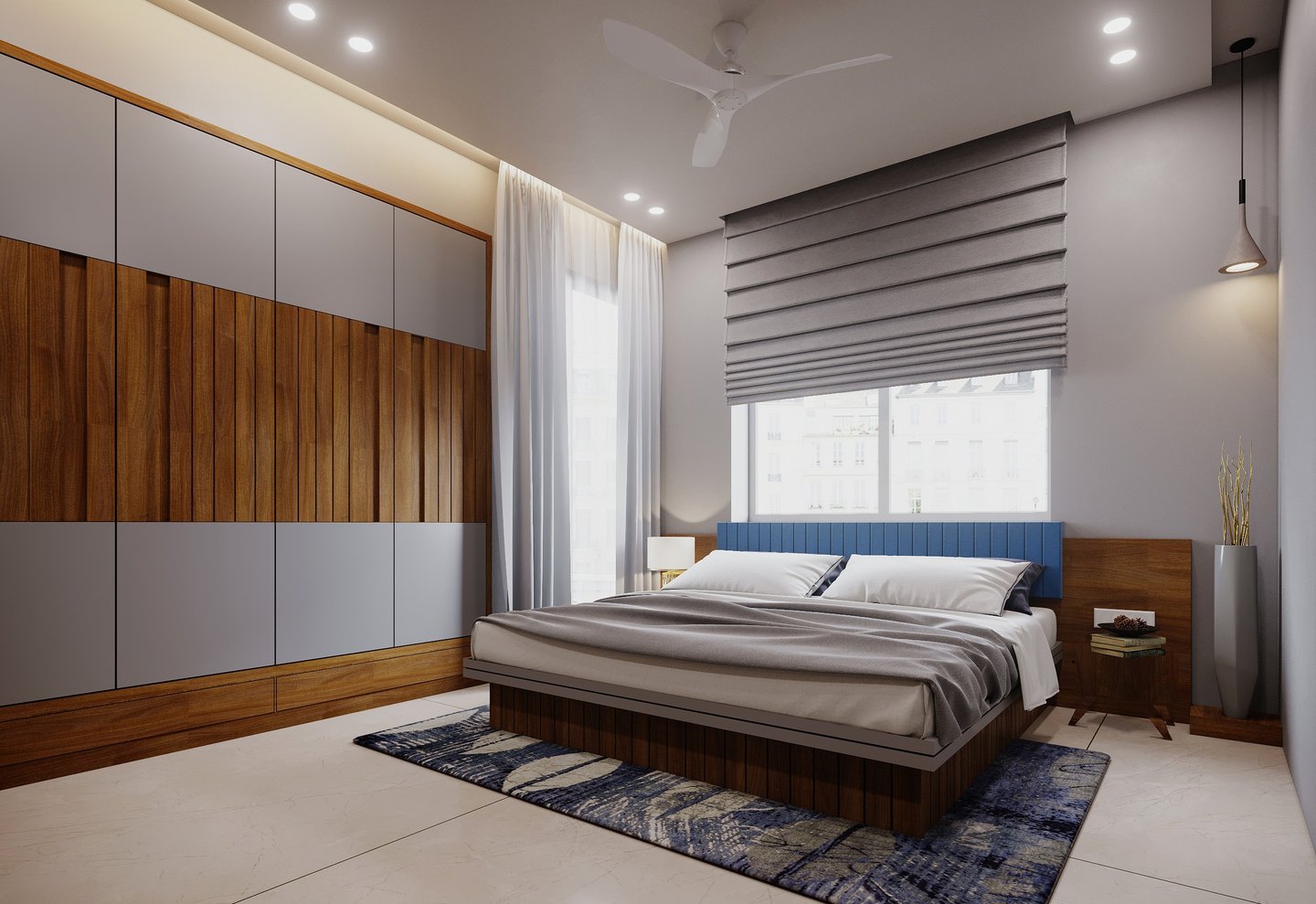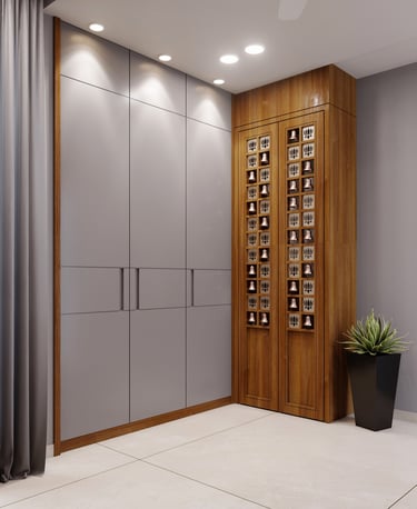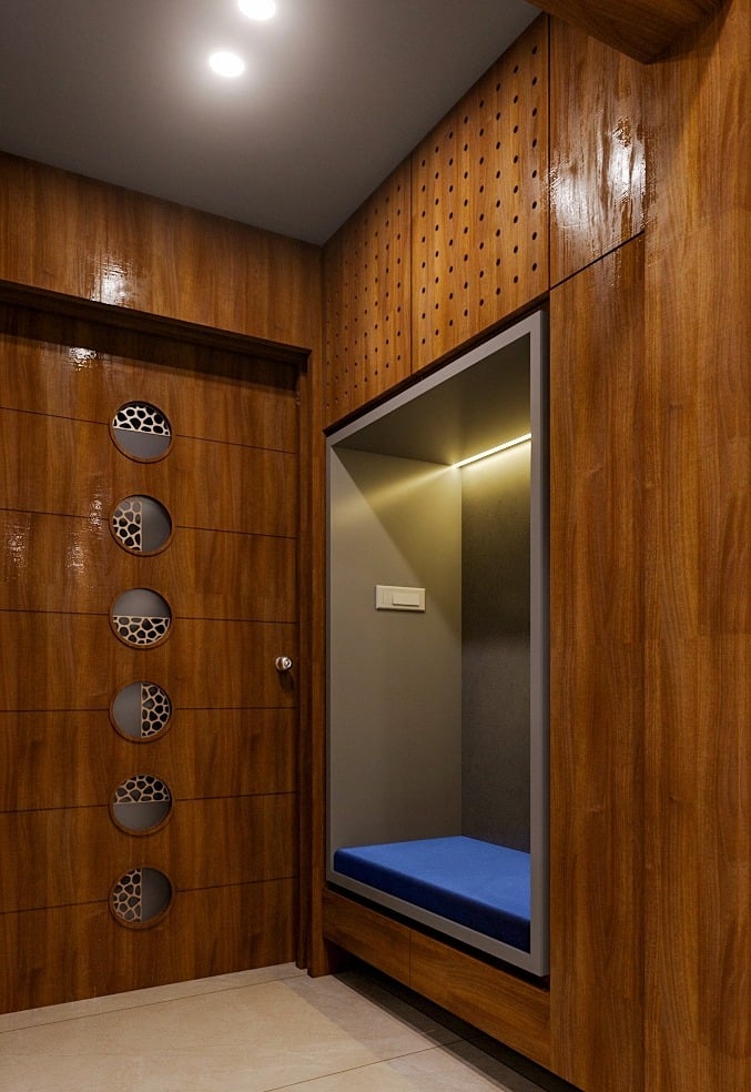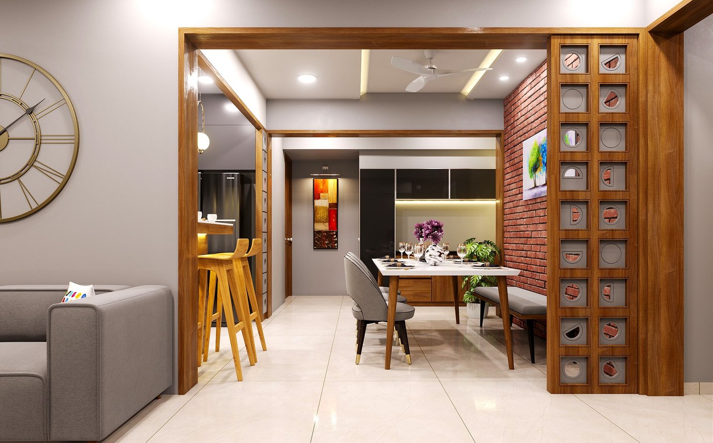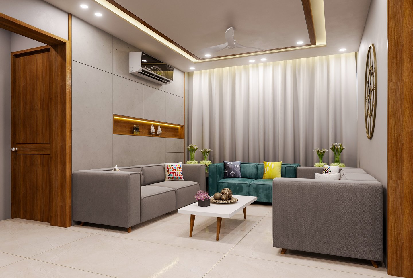 This residence for Mr. Arjun Makadiya in Upleta reflects HV Interior’s signature blend of bold textures, minimal color palettes, and intelligent space utilization. The home embraces earthy wood tones, soft greys, and ambient lighting, creating a warm, welcoming vibe. The living area exudes comfort with its clean-lined sofas and artistic accents, while the kitchen and dining zones flow seamlessly in an open-plan layout. Each bedroom is designed with individual character modern wardrobes, layered lighting, and rich finishes define their ambiance. With a fusion of contemporary aesthetics and functional design, this home delivers comfort, clarity, and quiet luxury at every corner.